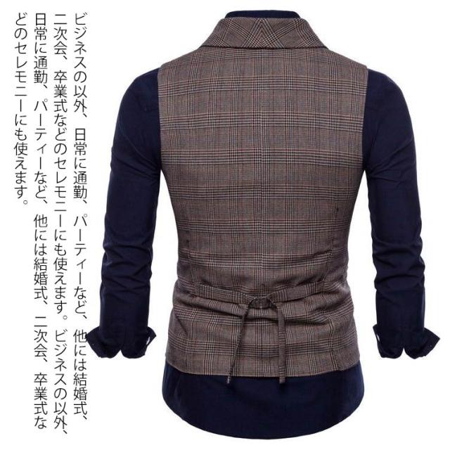 | ダブルボタンフォマールベスト、シャツとコーディネートがお洒落な一着、マルチに欠かさないアイテム 着心地にこだわったスーツベスト。 コットンとポリエステルの混紡素材で、柔らかい肌触り?感ができて優しいフィット度が楽しみです。 後ろは尾錠付き、自分に合うウエストを調節可能。 通気性、快適性に優れで春夏秋冬も着用可能。 フォーマルにはもちろん、カジュアルなシャツと合わせるとコーディネイトがぐっと引き締まるのでおすすめです。 ビジネスの以外、日常に通勤、パーティーなど、他には結婚式、二次会、卒業式などのセレモニーにも使えます。 | |