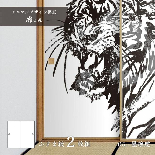 ふすま紙 アニマル デザイン 襖紙 虎の巻 tiger_05F 墨絵虎 91cm×182cm 2枚入り のり貼りタイプ アサヒペン 寅年 干支 ホワイトタイガー タイガー おしゃれ 個性派 洋風 和柄 水墨画 アート デザイン モダン