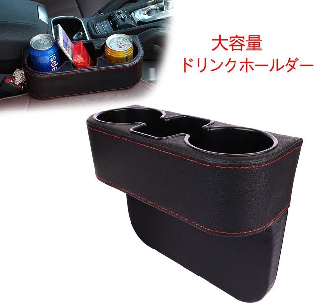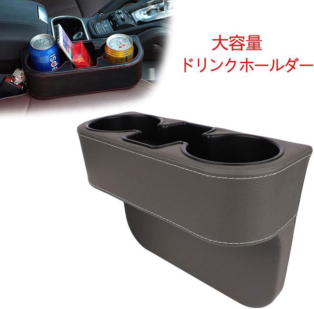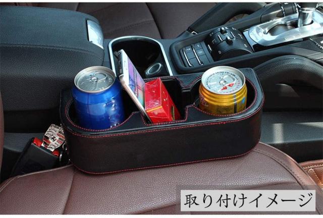 PU製【1個セット】 車用 サイド収納ボックス シートポケット コンソール カップホルダー サイドトレイ 収納ボックス 座席 隙間 用 差し込み 運転席/助手席汎用タイプ