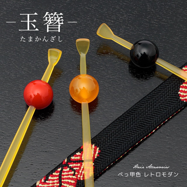 玉かんざし 玉簪 かんざし 一本 卒業式 成人式 振袖 訪問着 小紋 浴衣 黒 赤 オレンジ 黄色 樹脂 髪飾り メール便 送料無料