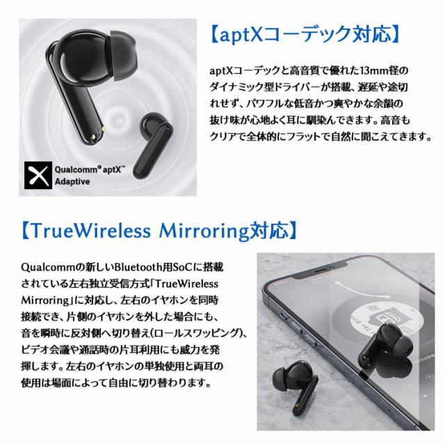 最新のBluetooth 5.2テクノロジーとQualcomm Aptxオーディオ技術を搭載しており、通信が混雑する場所や時間帯など環境でも安定して遅延の少ないオーディオリスニング体験を実現します。