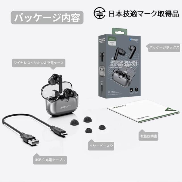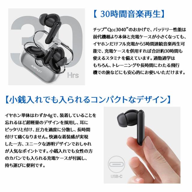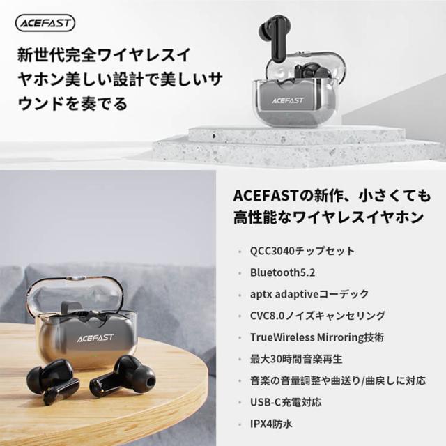 ACEFAST ワイヤレスイヤホン Bluetooth5.2 完全ワイヤレス イヤホン QCC3040チップセット搭載 AptX Adaptiveコーデック対応 HiFi cVc8.0ノイズキャンセリング5時間連続再生 音楽再生 13mmダイナミックドライバー TWS 音量調節 IPX4防水 低遅延 Type-C