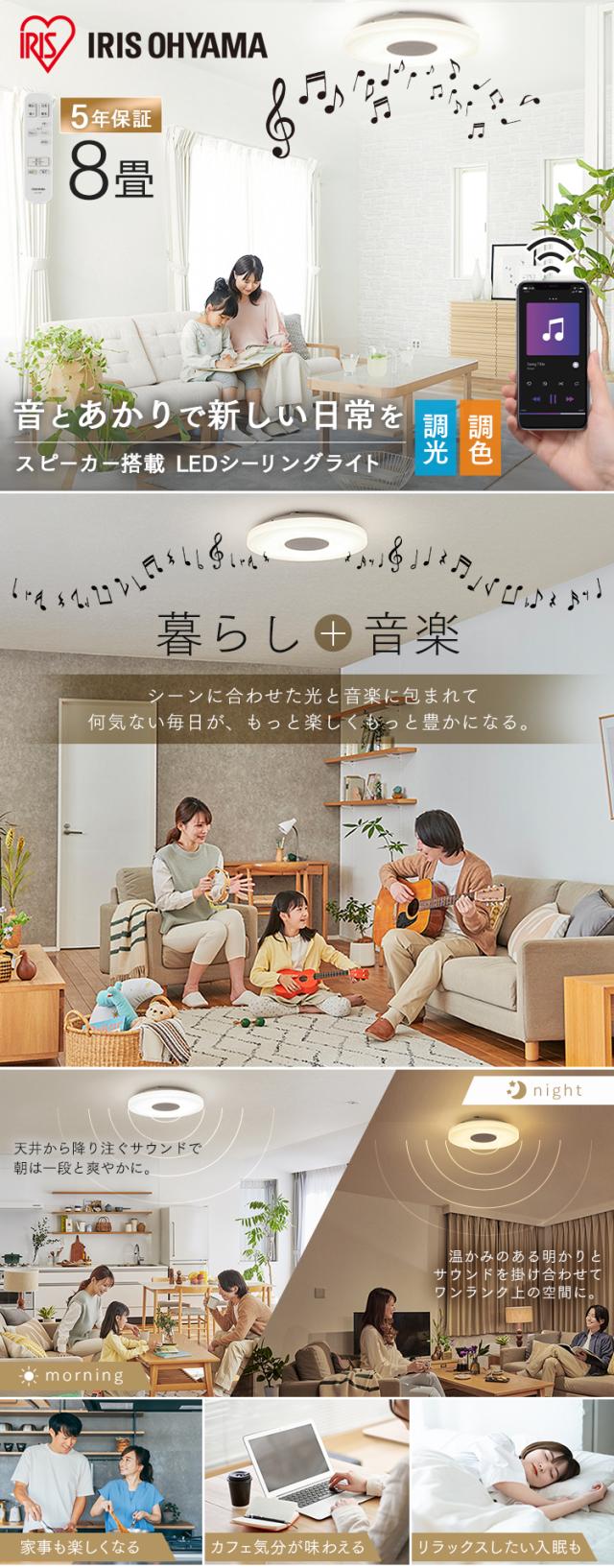 シーリングライト LEDシーリングライト 8畳 スピーカーシーリングライト CEA-2108DLSP シーリングライト シーリング LED 調光 調色 スピーカー 音楽 サウンド 照明 アイリスオーヤマ 天井照明 天井 新生活