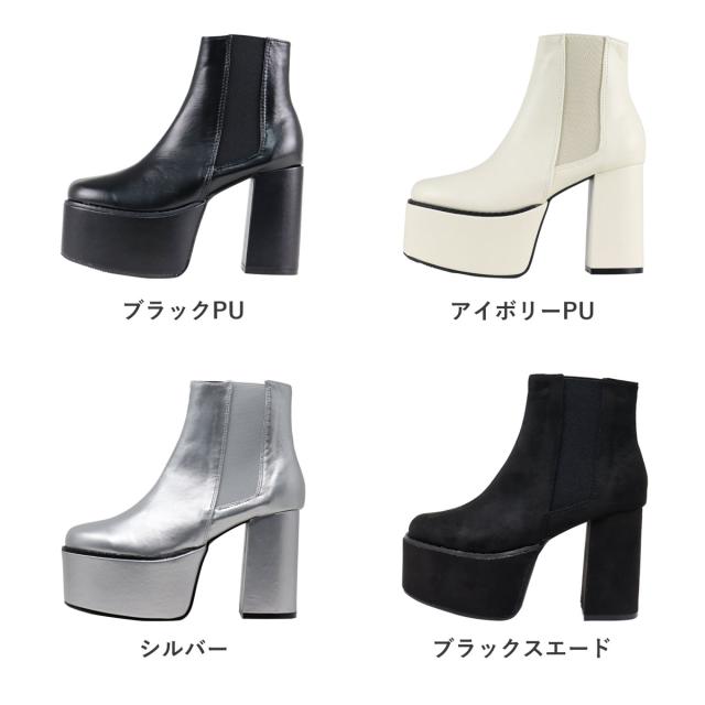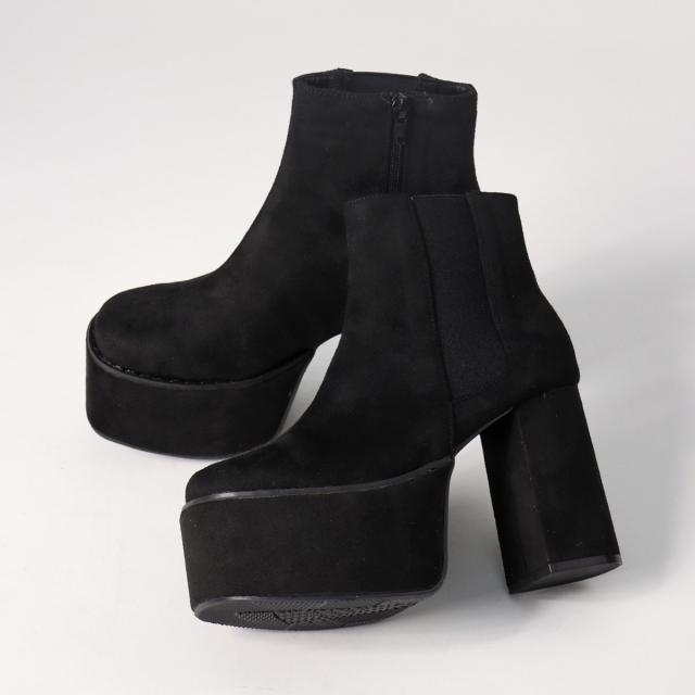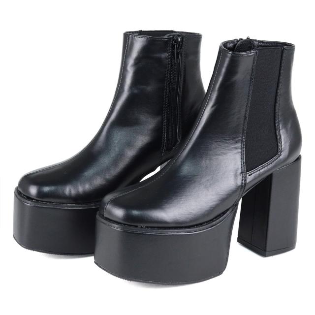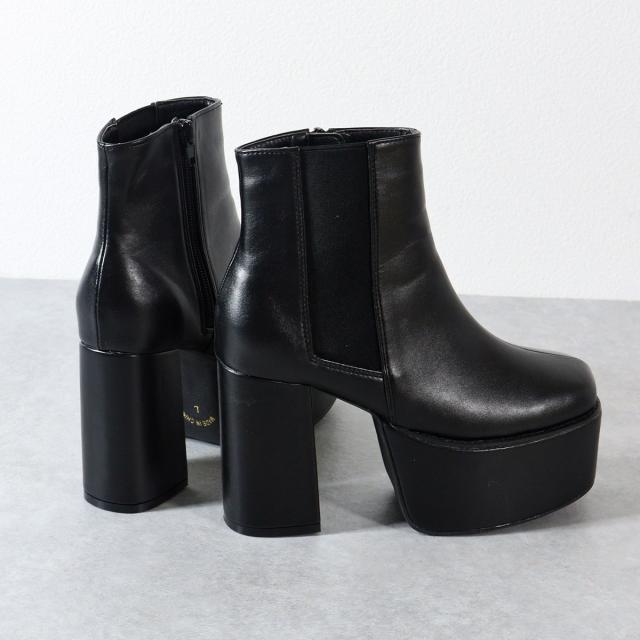 【返品交換不可】サイドゴアブーツ レディース 厚底 チャンキーヒール サイドジップ ショートブーツ プラットフォーム 美脚 脚長 10.5cmヒール No.1571 22.5cm-24.5cm 黒 ブラック LOVEHUNTER ラブハンター