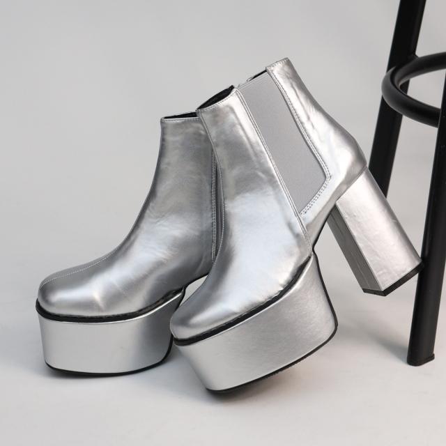インパクトのある美脚効果バツグンの厚底ブーツ。
