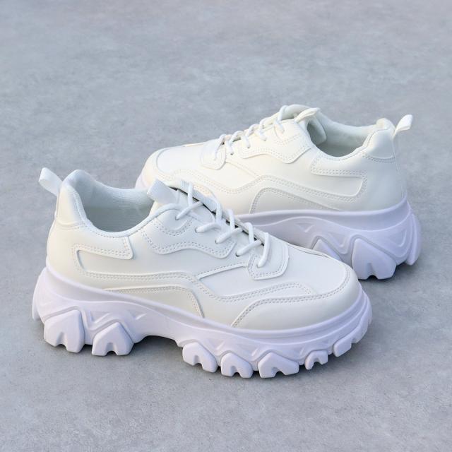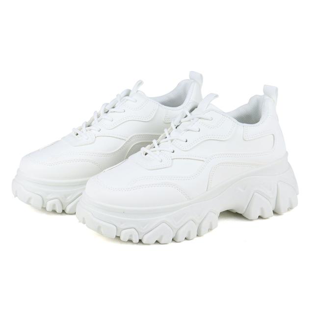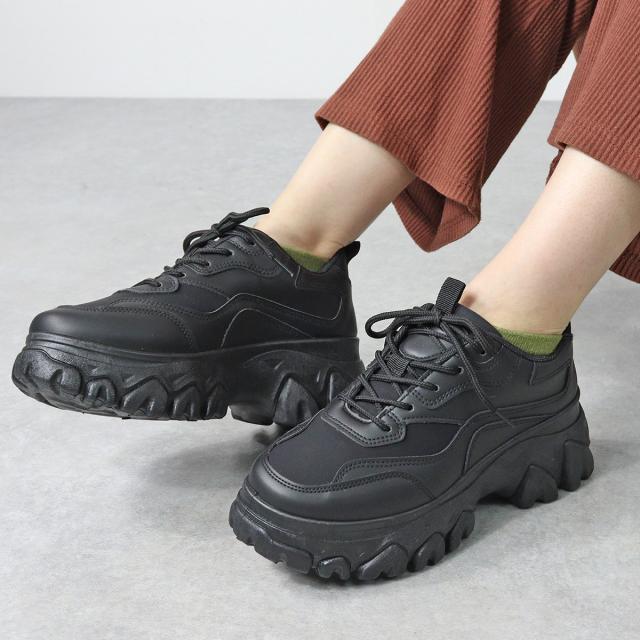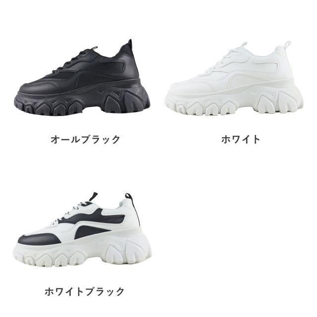 【返品交換不可】シューズ スニーカー ローカットスニーカー ダッドシューズ ダッドスニーカー レディース 靴 厚底 5ホール レースアップ 6cmヒール 22.5cm〜25.5cm 黒 ブラック 白 ホワイト LOVEHUNTER ラブハンター No.1573
