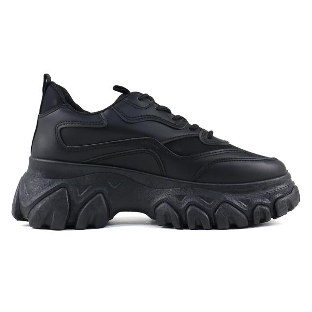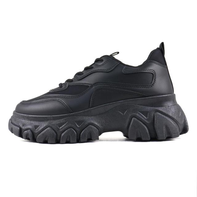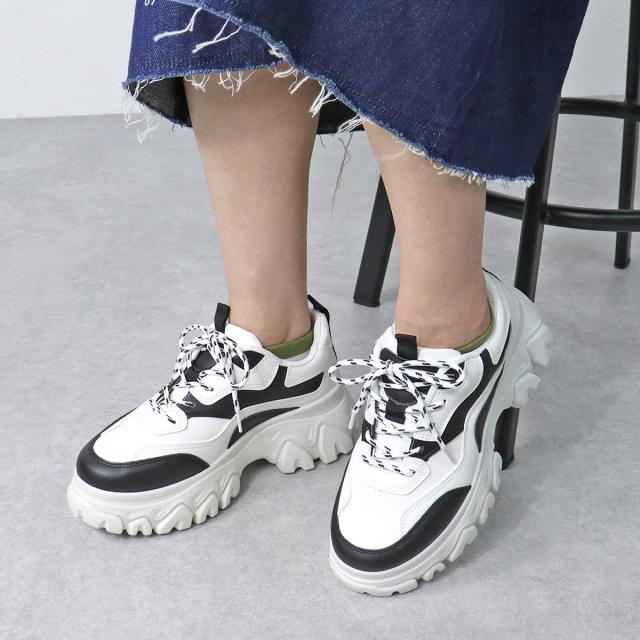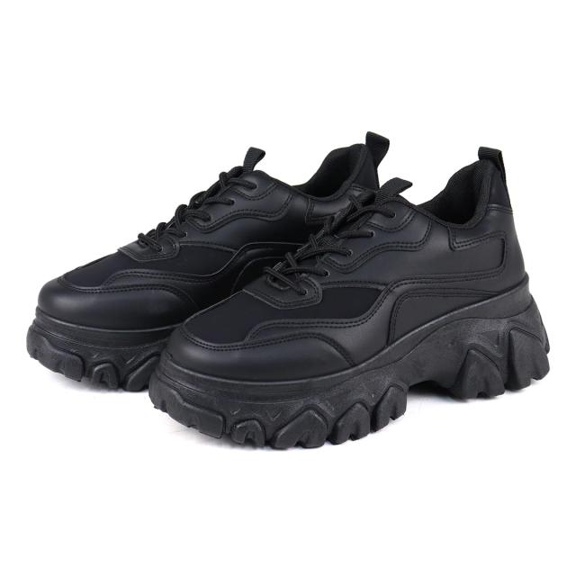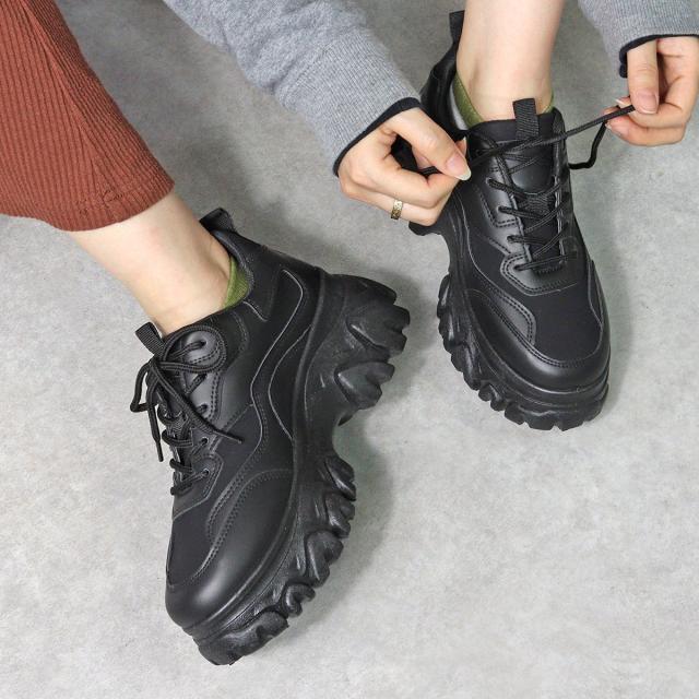 スニーカー レディース ダッドスニーカー 厚底 6cmヒール ローカット 合成皮革 黒 No.1573 22.5-25.5cm レースアップ レザー 歩きやすい インソール 疲れにくい 白 ホワイト ブラック 5ホール 脚長 おしゃれ クッション カジュアル 痛くない 韓国 LOVEHUNTER ラブハンター