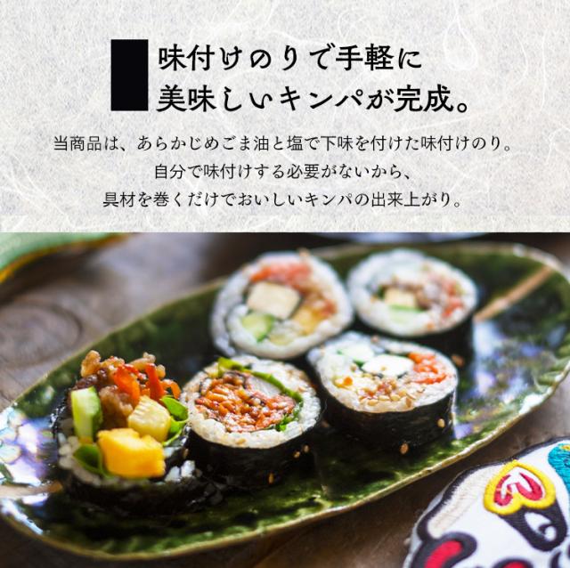 キンパ専用のり。ごま油と塩の味付け済みで手軽にキンパが楽しめます。