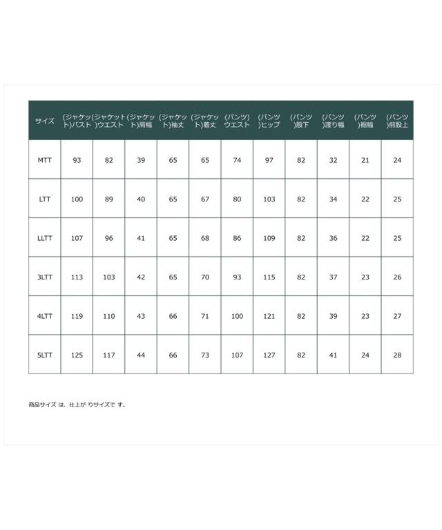 ・ パンツスーツ(MTT〜LTT)はこちら ・ パンツスーツ(LLTT〜5LTT)はこちら ・ パンツスーツ(MTT〜LTT)はこちら ・ パンツスーツ(LLTT〜5LTT)はこちら ・ スカートスーツ(MTT〜LTT)はこちら |