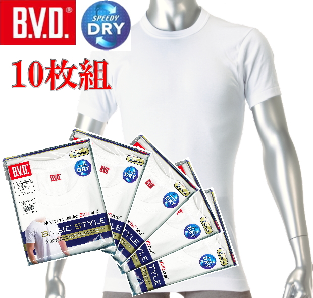 BVD 10枚組を特価にて!10枚組でこの価格!吸水速乾!オールシーズンお奨めのBVD特価半袖インナーシャツ!!シッカリした生地で洗濯に強い!