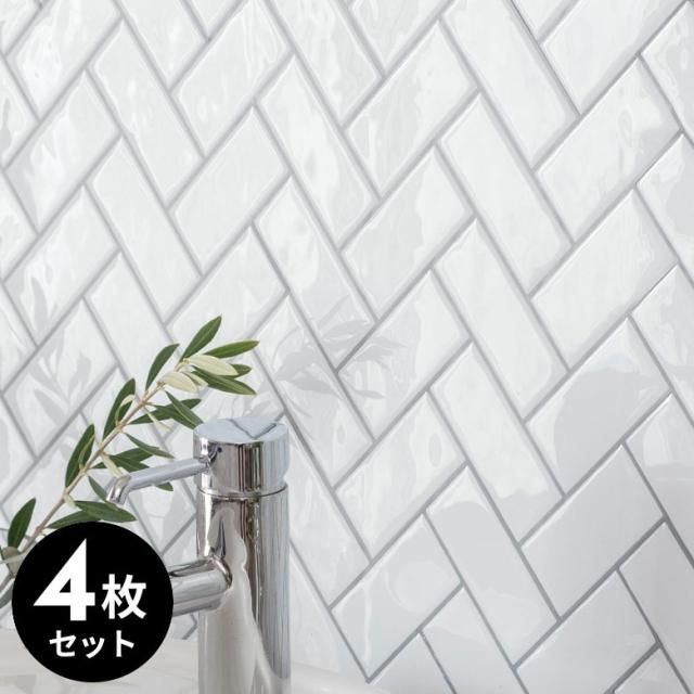 タイルシール ヘリンボーン 防水 4枚入り ホワイト 白 メトロ モザイクタイル [67074-4-wh]