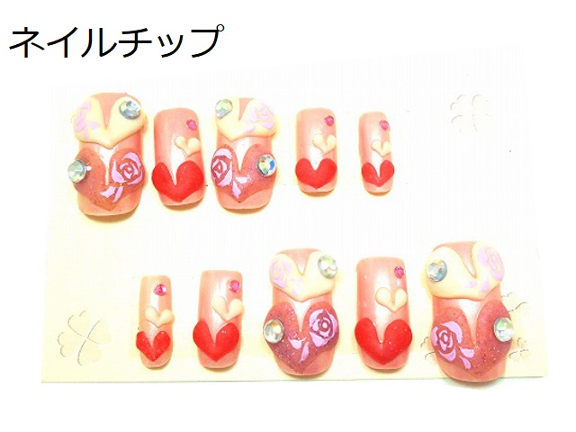 ネイルチップ★硬め仕上げ★付け爪・つけ爪★ハート★ピンク★かわいい系★フリーサイズ★ネイルチップ★K
