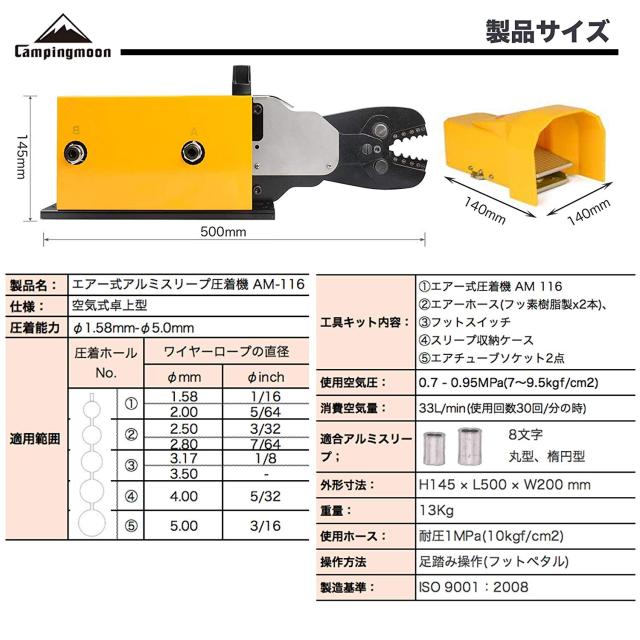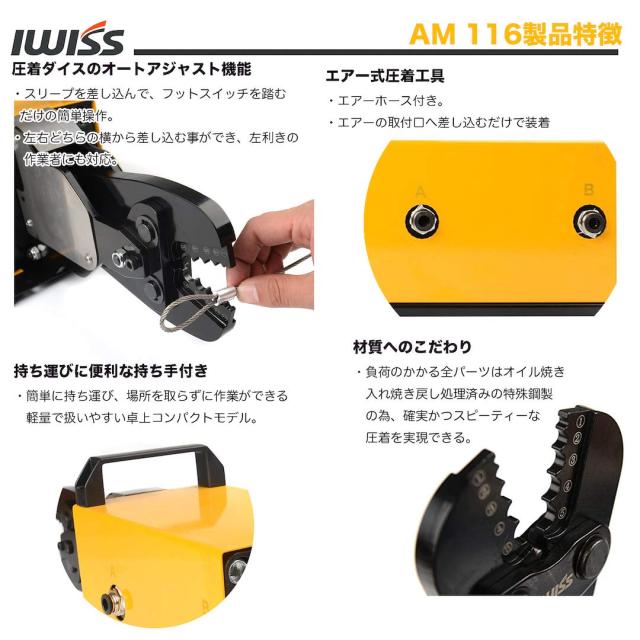 IWISS エアー式圧着機 卓上型 ワイヤーロープ アルミスリーブ 圧着機 AM-116