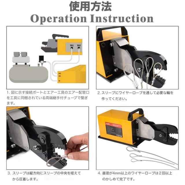 エアー式ワイヤーロープ圧着機 AM 116になります。アルミスリーブを差し込んで、フットスイッチを踏むだけの簡単操作。