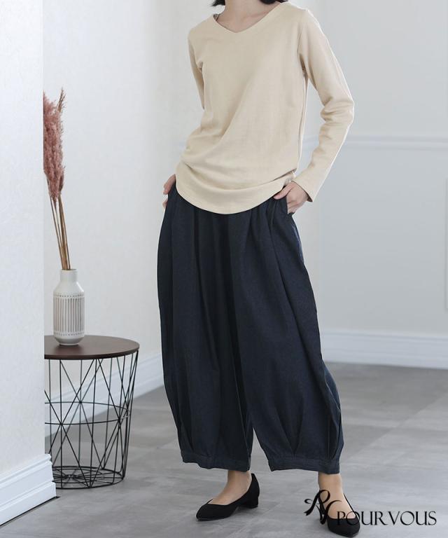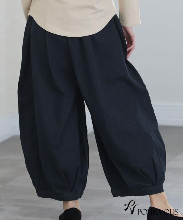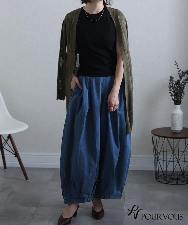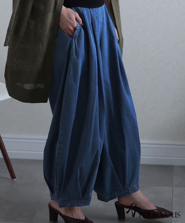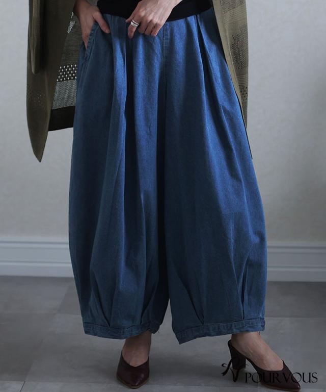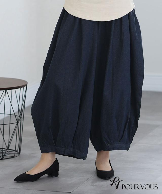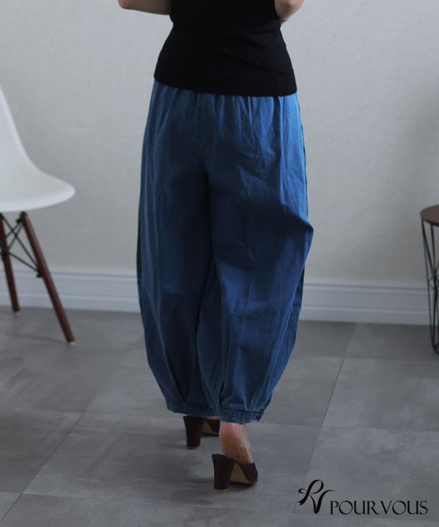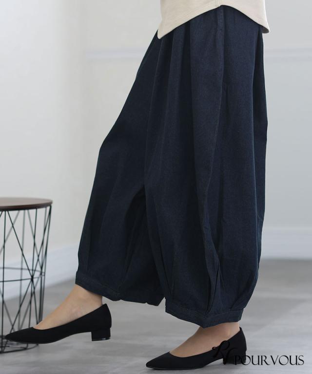 ■緩やかな今風のシルエットふんわりしたバルーンシルエットが可愛いデニムパンツウエストゴム仕様かつ、