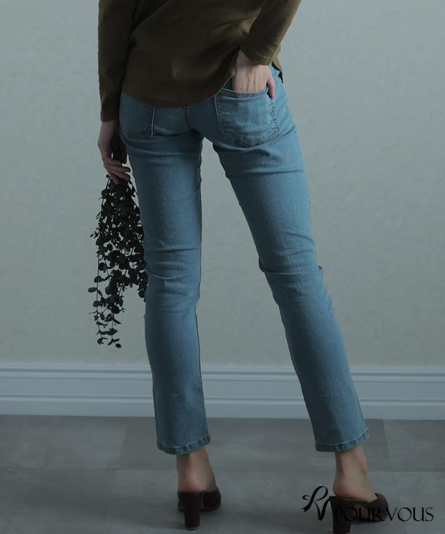 オールラバースキニーデニムパンツ【858211926】 20代・30代・40代・50代ボトムス・レディース・カジュアル・ロング・ミモレ丈・膝丈・ウエスト・ゆったり・コーデ・フレア・シンプル・タイト・台形・薄手・厚手・無地・刺繍・花柄・可愛い・キレイめ・着やせ・新作・レース・上品・セットアップ・体型カバー・スタイルアップ・小さいサイズ・3Lや4L・・即日発送・送料無料・オフィス・ワーク・オールシーズン・デイリー・普段着・オケージョン・セミフォーマル・婚活・顔合わせ・同窓会・お呼ばれ・食事会・謝恩会・親族・七五三・お宮参り・冠婚葬祭・弔事・女子会・デート・入学式・卒業式・入園式・ママ