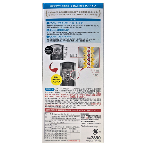 ホルツ/Holts E-plus neo エンジンリファイン エンジンオイル添加剤 270ml 3万〜8万km 回復コーティング パワー不足改善 MH7890