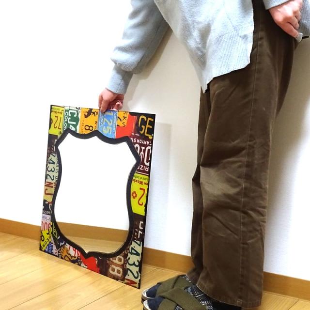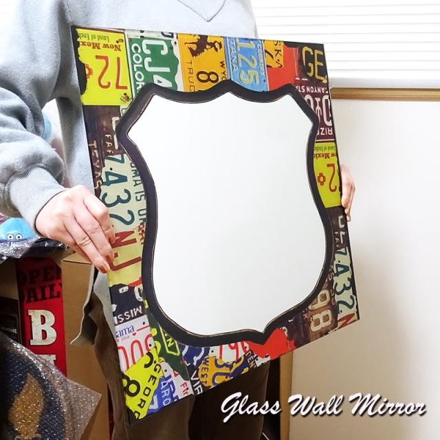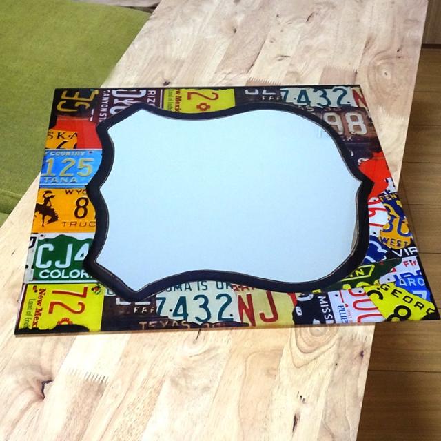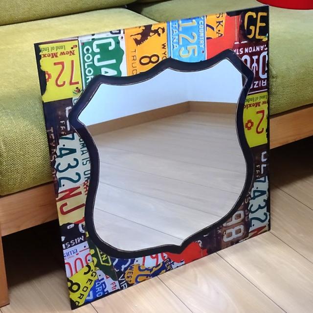 ミラー 壁掛け 可愛い アンティーク ウォールミラー ナンバープレート 高級感 お洒落 インテリア ビンテージ アメリカン 雑貨 鏡