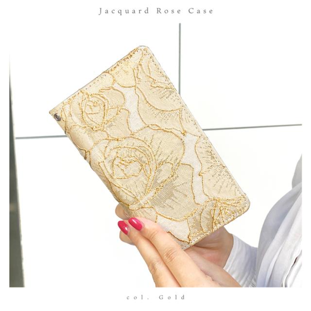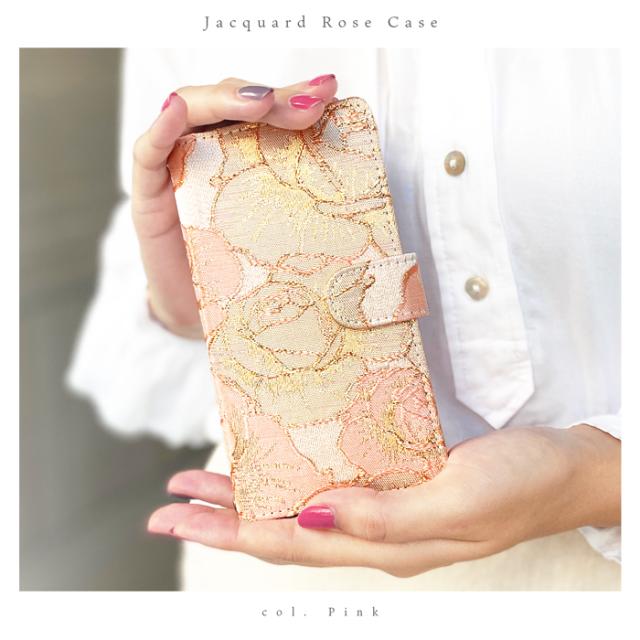 ジャガードローズ 手帳型ケース (内側:黒TPU ケース)