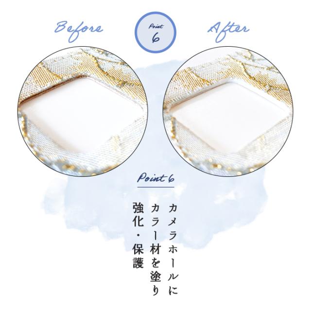 内側のケースに合わせてカメラ穴・フラッシュ穴等を一点一点、手作りであけております!