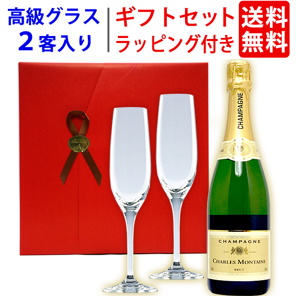 ワイン ワインセット ギフトセット シャンパン1本+高級クリスタルグラス2客 送料無料 ギフト プレゼント ^W0GT15SE^