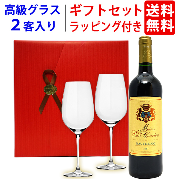 ワイン ワインセット ギフトセット ボルドー赤1本+高級クリスタルグラス2客 送料無料 ギフト ^W0GT19SE^
