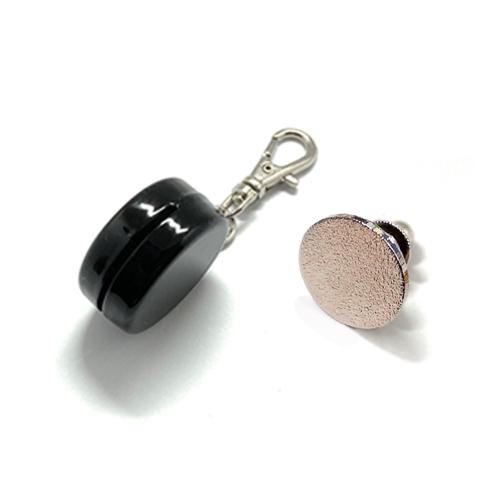 (鈴)外側:真鍮 中身:ネオジム磁石 (バッジ)鉄