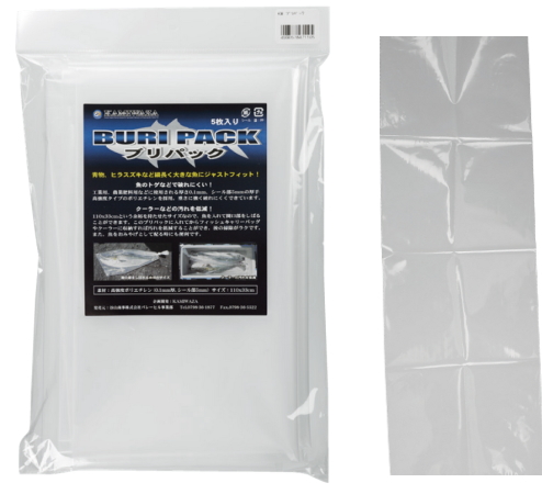 ブリやヒラマサなどの青物やヒラスズキなど細長く大きな魚にジャストフィット。工業用や農業肥料用に使われる厚さ0.1mm、シール部5mmの厚手高強度タイプですので、重さや魚のトゲに強く破れにくくできています。 110x33cmと余裕のサイズ設定なので、魚を入れて開口部を縛ることが可能です。ブリパックに入れてからフィッシュキャリーバッグやクーラーに収納すれば汚れも少なく、後の掃除もラクです。魚をおみやげとして配る時にも便利です!