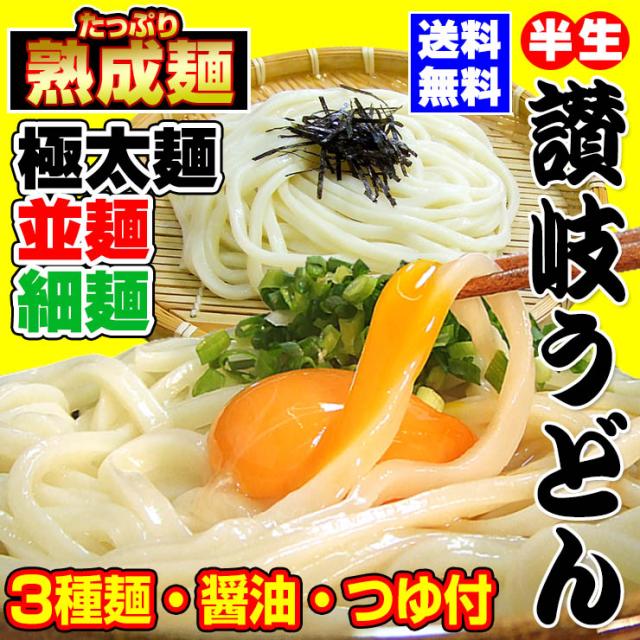 送料無料 半生 讃岐うどん 3種麺 つゆ付きセット 750g お試し 20時間熟成 極太麺 並麺 細麺 最安値挑戦 お取り寄せ Y