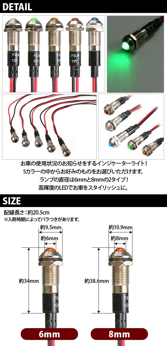 LEDインジケーターライト シルバー 12V汎用 ロングタイプ 選べる5カラー 選べる2サイズ AP-LL137 カラー: ホワイト レッド ブルー イエロー グリーン
