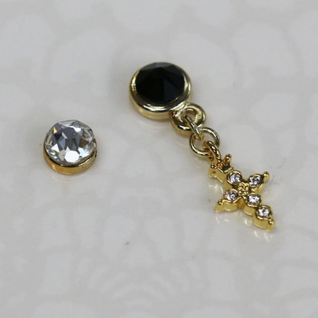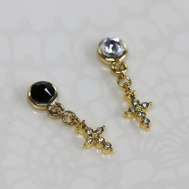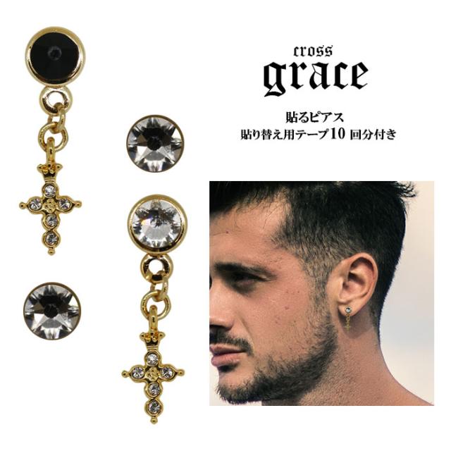 grace貼るピアス クロスストーン アシンメトリー ゴールド メンズ貼るピアス 男性 貼り替えテープ付き ノンホールピアス シールピアス 十字架 チャームピアス デザインパーツ 貼るだけ ピアスシール 痛くない リフィルテープ 貼る ピアス 貼るピアス