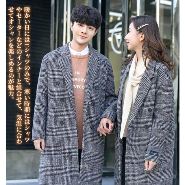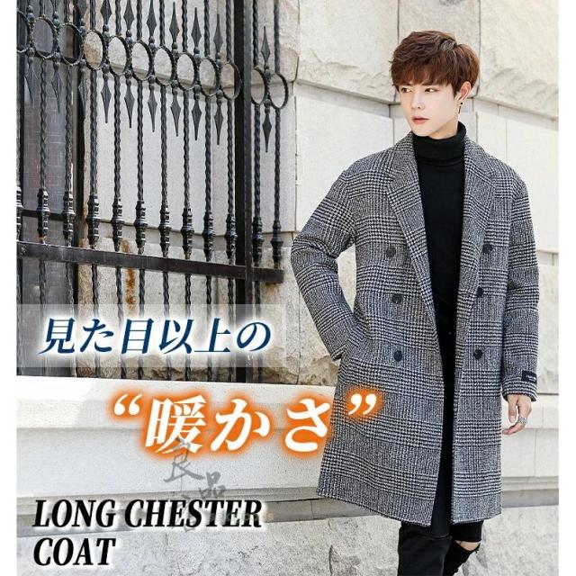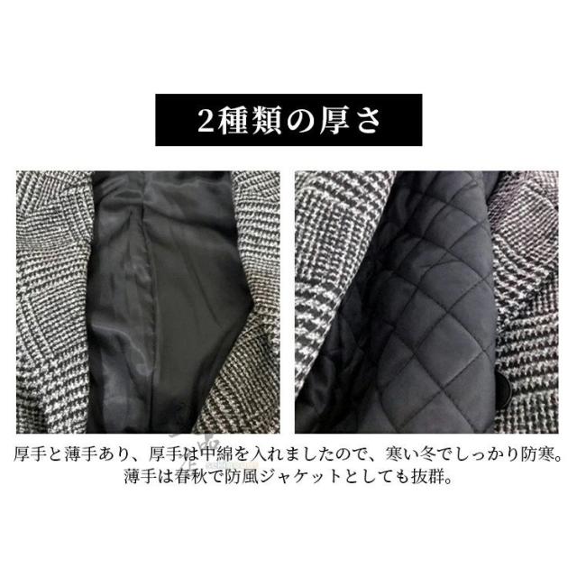 チェスターコート メンズ レディース 千鳥格子 チェック柄 テーラード ロング 男女兼用 スプリング ビジネス 中綿 通勤通学 ラシャ ツイード 大きいサイズ