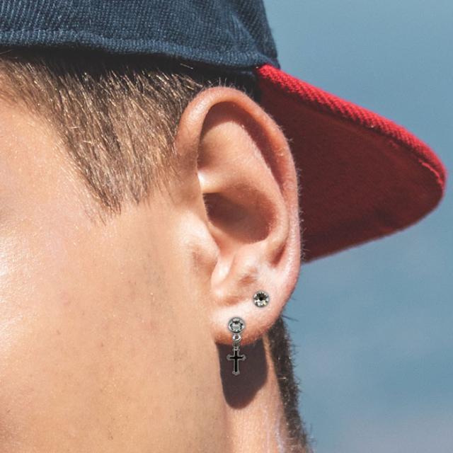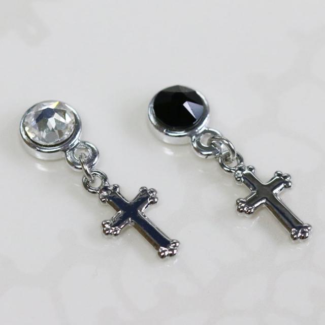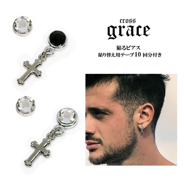 grace貼るピアス クロス アシンメトリー シルバー メンズ貼るピアス 男性 貼り替えテープ付き ノンホールピアス シールピアス 十字架 チャームピアス デザインパーツ 貼るだけ ピアスシール 痛くない リフィルテープ 貼る ピアス 貼るピアス
