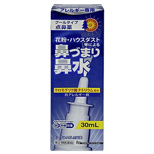 抗アレルギー剤「クロモグリク酸ナトリウム」を配合した「アレルギー専用」点鼻薬です。クロモグリク酸ナトリウム(抗アレルギー剤)が肥満細胞膜を安定化し、鼻水・鼻づまり等のアレルギー症状を引き起こす誘発物質(ヒスタミン等)の放出を抑制します。また、クロルフェニラミンマレイン酸塩(抗ヒスタミン剤)がヒスタミンの受容体結合をブロックし、すでに起きてしまった症状を緩和します。さらに、ナファゾリン塩酸塩(血管収縮剤)が鼻づまり等を緩和します。花粉、ハウスダスト等による鼻水、鼻づまり、くしゃみといったアレルギーによる不快症状に効果を発揮します。パッケージの正面上部に凹みを用い、他社製品との差別化を図りました。