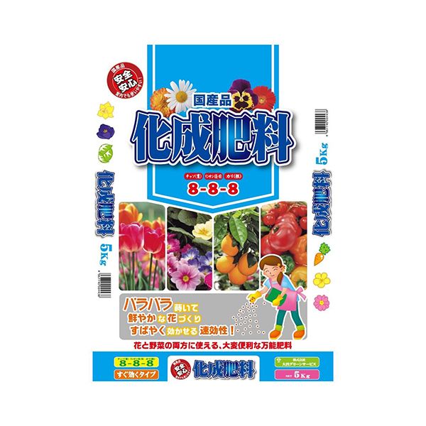チッソ・リン酸・カリの肥料三要素が、8・8・8とバランスの取れた、即効性のあるスタンダードな化学肥料です。