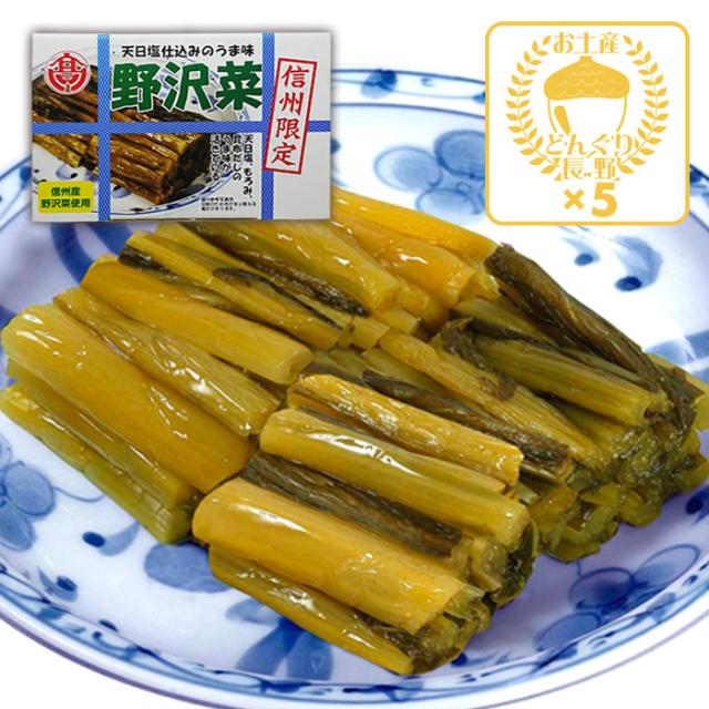 天日塩仕込みのうま味信州限定野沢菜漬け×5箱(送料込)(信州長野県のお土産 お取り寄せご当地グルメ 野沢菜漬け物 醤油漬物 通販)