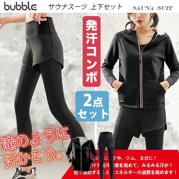 サウナスーツ レディース【2点上下セット】上下 セットアップ ダイエットウェア 発汗 痩せ サウナパンツ トレーニング 服 エクササイズズボン 発汗パンツ 運動効率UPで代謝促進 おしゃれ 脂肪燃焼 ファッション
