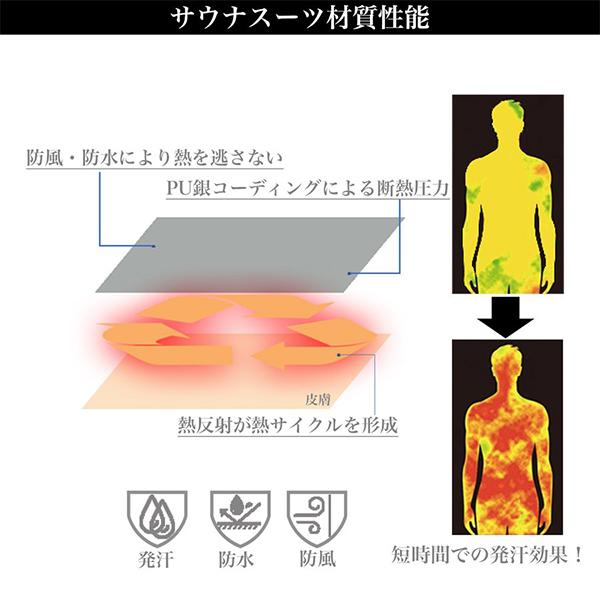 サウナスーツ素材:スパンデックス 21.2%、ポリエステル 78.8%