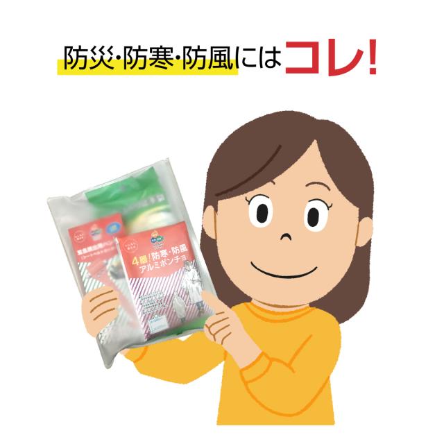 アルミポンチョは劣化しにくい4層構造。非常時の防寒用ポンチョです。