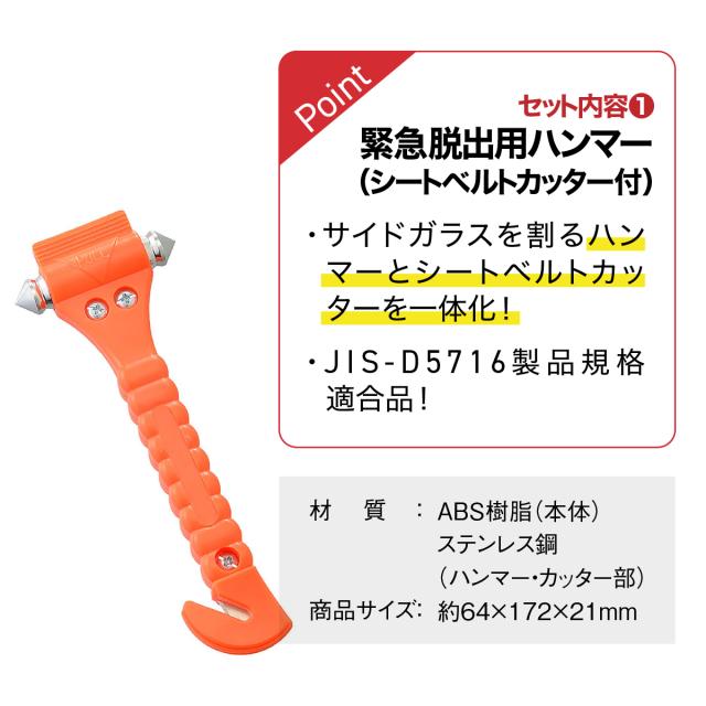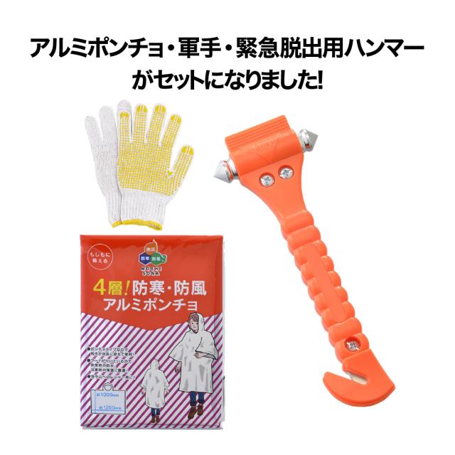 車載防災セット アルミポンチョ 軍手 緊急脱出用ハンマー 車 防災 防寒 防風 防災グッズ kinkyu-set