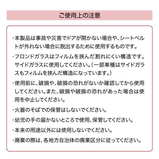 ※この商品は事故や災害でドアが開かない場合に緊急脱出するために使用するので、それ以外では使用しないでください。
