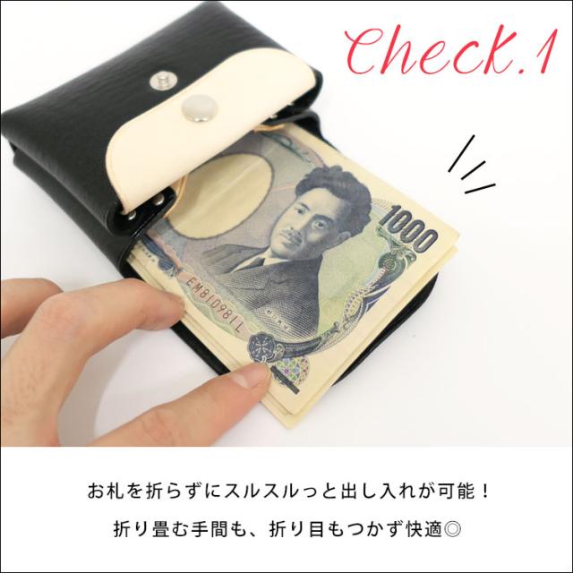 ・お札を折らずに収納できカードも入る○フラップボタン式で取り出しやすい。