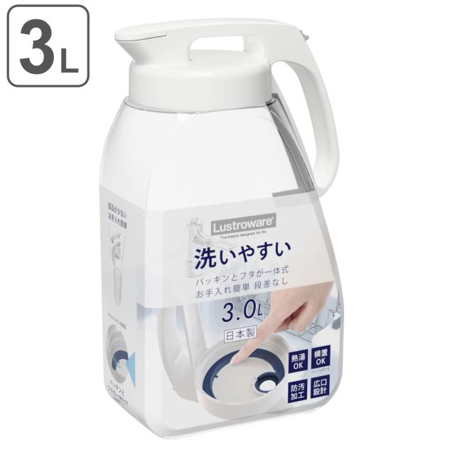 ピッチャー 3L シームレス パッキン一体型 ワンタッチ ラストロ 耐熱 横置き プラスチック ( 冷水筒 麦茶ポット 水差し 3リットル 日本製 大容量 パッキン ふた 一体型 熱湯 麦茶 冷水ポット 広口 取っ手付き 角型 お手入れ簡単 )