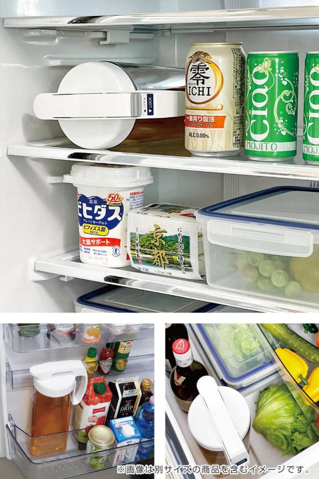 フタ上部の持ち手はしっかり指が入り、握りやすい設計です。ドアポケットや野菜室からの出し入れもスムーズに行えます。