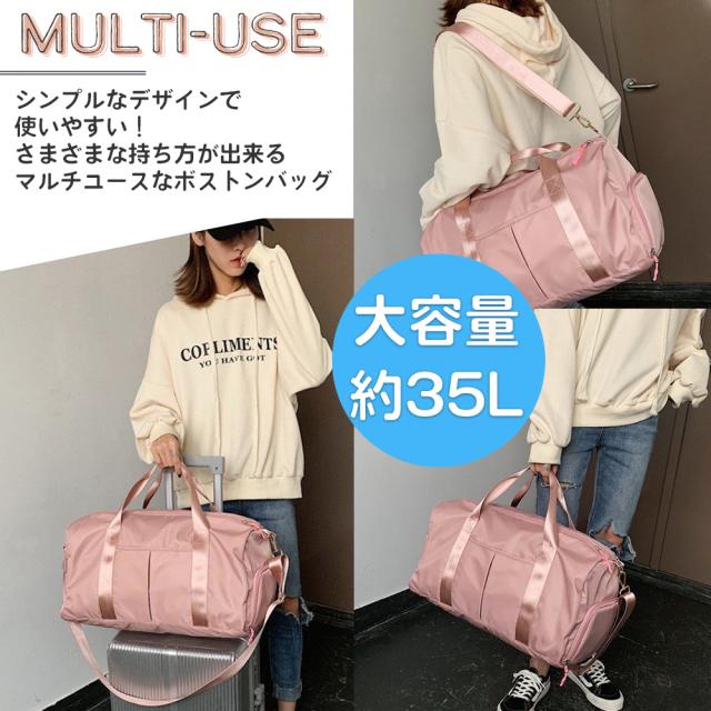 | 商品の説明 | シンプルデザインがおしゃれな大容量ボストンバッグです。 旅行の際にはスリットをキャリーのハンドルにはめることが出来るため、キャリーに載せて使ってもずり落ちを防げる仕様です。 機内持ち込み荷物をあらかじめ仕訳けておけば旅行も更に快適に。 大容量・最大約35Lの収納力で荷物が多い日の仕事や旅行はもちろんジムや部活にも使えます。 ラゲッジはいくつかのポケットを配置しており、使用用途に合わせて自由に使えます。 ・濡れたものと乾いたものを仕分けるスペース ・靴などを別に収納できる底面ラゲッジスペース ・メインラゲッジ カラーはピンクとブラックの2種類をご用意、男女年齢問わず使って頂けるユニバーサルデザインです。 |