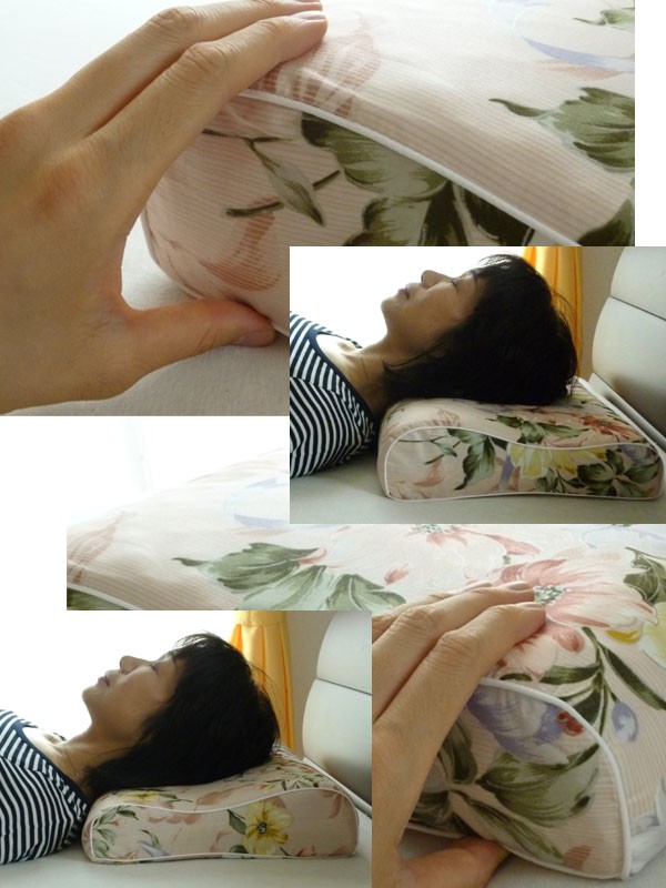 人間が自然に横たわったときにできる首から肩の空間を埋める形状で,首筋を自然に支えます。(頚椎安定)