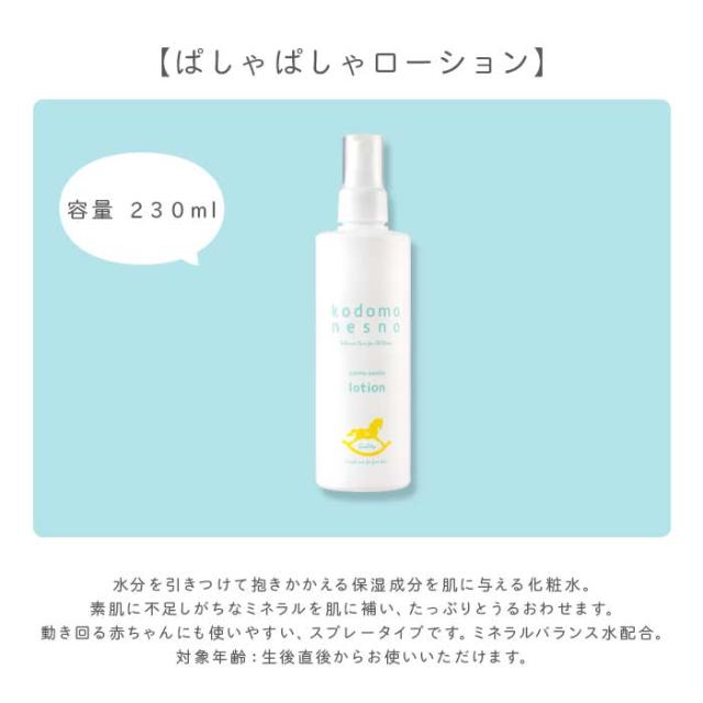 こどもねすの ぱしゃぱしゃローション 赤ちゃん ベビーローション ボディーローション 保湿ローション 保湿 弱酸性 アレルギーテスト済 アルコールフリー オイルフリー 0歳 新生児