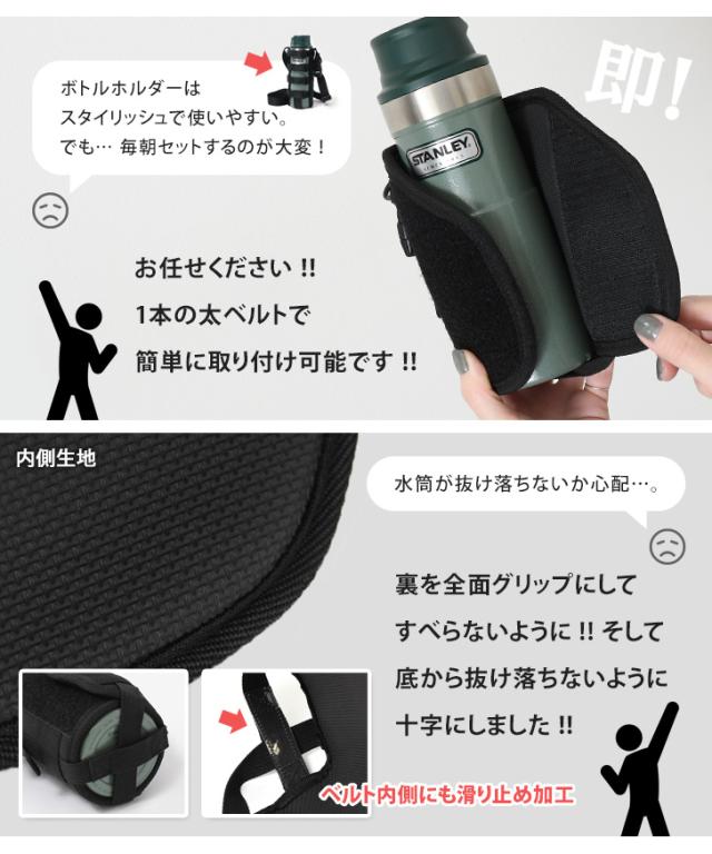 - ボトルホルダーを使っていたが、1年も持たなかったので買い替え ホールド力もあって幼児でも簡単につけられる 20cmぐらいの水筒に使ってみたが、バランスもいい感じ お店の対応もよかった