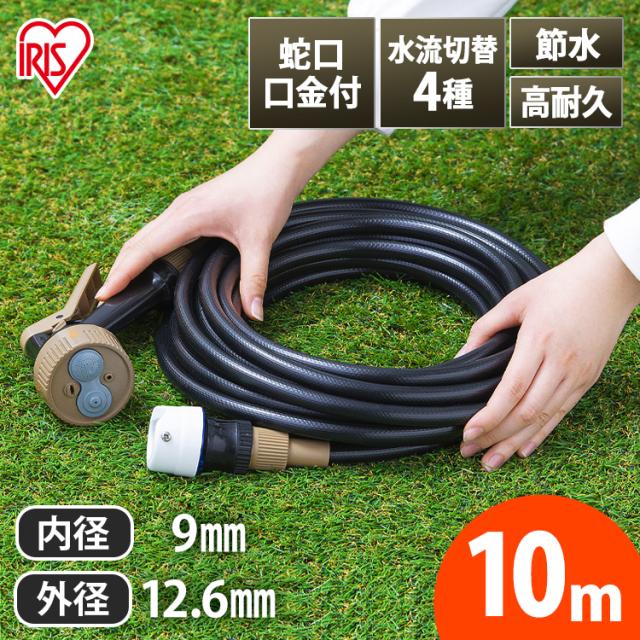 ガン付Φ9カットホース ブラック 10M GKH-10 10m カットホース ホース アクアガン 蛇口口金 糸入り 耐寒 耐圧 強力ポリエステル糸 節水 オールシーズン アイリスオーヤマ