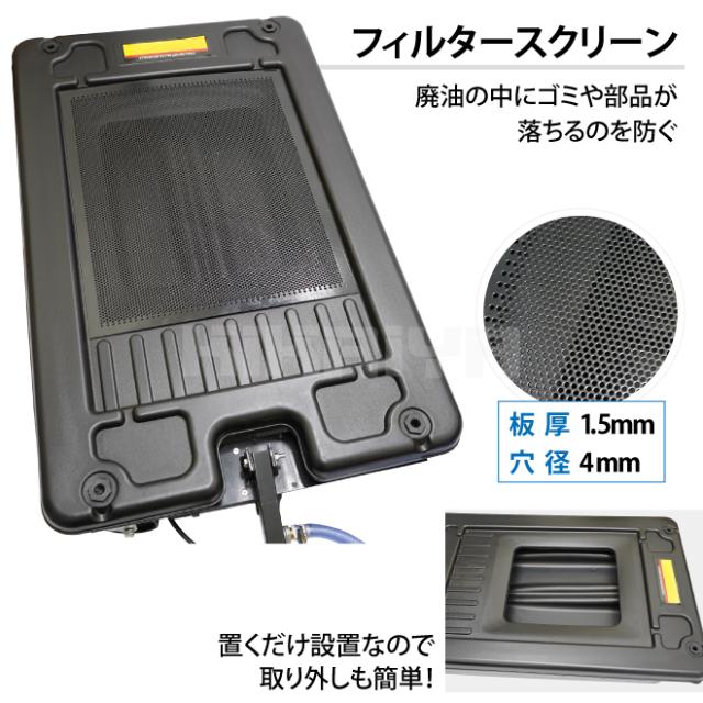 大変なオイル交換もこれ一つでラクラク♪ ●トラックやバスなど大型車両のオイル交換に最適なオイルドレン ●タンク容量は約64リットルと大容量! ●タンクにはフィルタースクリーンを設置するため、オイルの中にゴミや部品が 落ちるのを防ぐことができます ●低床型のため、最低地上高200mm以上の車両であれば下に入れることができます ●電動ポンプ付きなのでオイルの排出も楽に行えます ●4つの自在キャスターとT字ハンドルで移動もスムーズに行えます ●T字ハンドルにはフックがついているためホースや電源コードなどを引っ掛けて 保管ができます (ハンドルは直立しません) ●製品の組立てはお客様ご自身でお願いします (必要工具:13mm・14mmスパナ、プラスドライバー) 【使用方法】 1. タンクがオイルドレンボルトの真下になるように調整しながら本製品を車両の下へ設置 2. オイルドレンボルトを外し、オイルをオイルドレンに排出させる 3. オイルが完全に排出されたらオイルドレンボルトを閉め、オイルドレンを車両下から引き出す 4. オイルドレンの中に溜まったオイルを排出する (コンセントに接続してスイッチを入れるだけでOK) ※オイルを受ける際はタンクから溢れないようご注意ください ※使用後の屋外保管はお控えください 品番:ODE-17 |